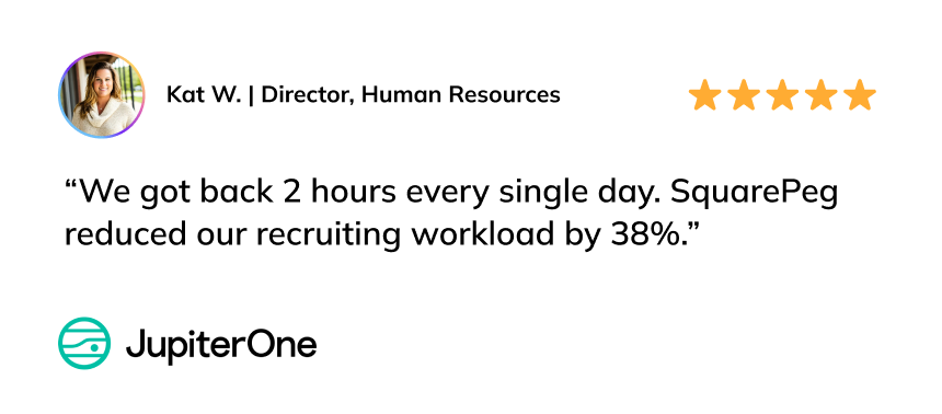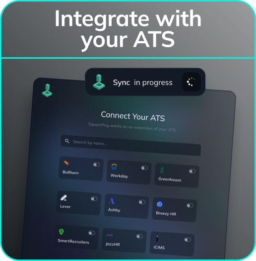 SquarePeg plays nicely with your favorite ATS platforms, making it easy to plug into your existing workflow. And if your ATS isn’t listed? Don't worry we have 50+ integrations. Just say the word we’re all about making great hiring happen, wherever you are.